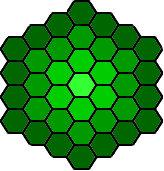 There are 64 hexagons in total. There are 37 single hexagons, 19 hexagons which contain 7 smaller hexagons, 7 hexagons which contain 19 hexagons and one large hexagon which contains all smaller hexagons. (3/21)