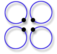 rollerbladers exercise around separate circular paths. Each path is one third of a mile in length. They start simultaneously at the black spots, with speeds of six, nine, twelve, and fifteen miles per hour.
